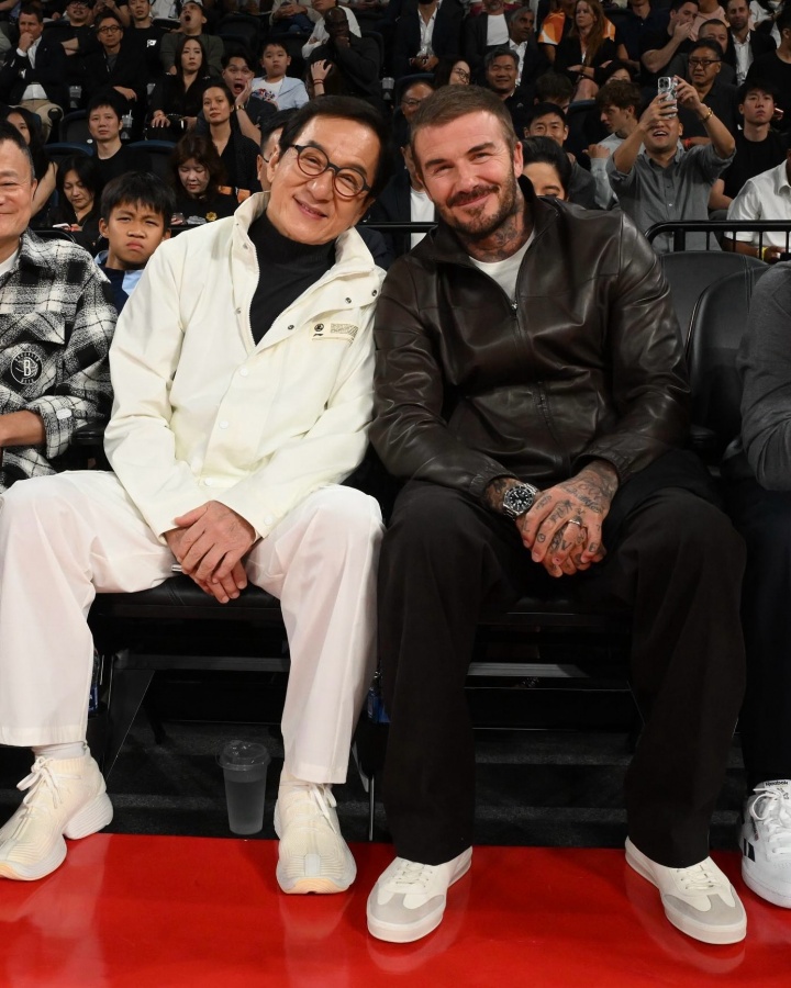 直播吧10月11日讯 贝克汉姆观战NBA中国赛,社媒晒与成龙、姚明合影。