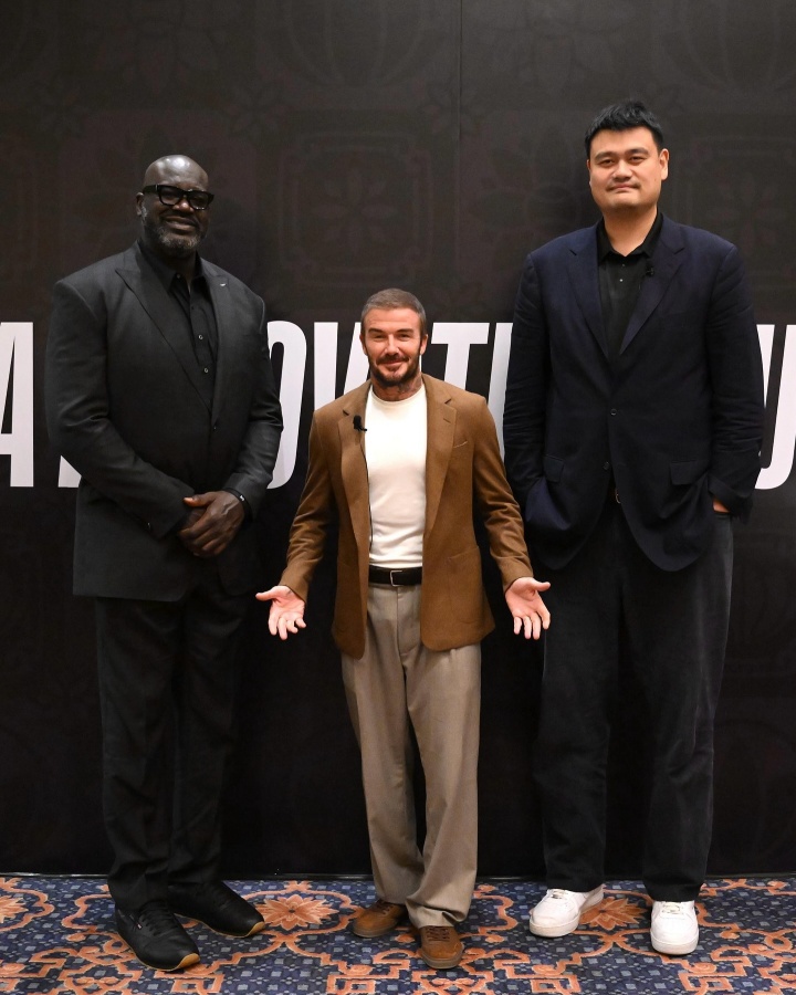 贝克汉姆晒照:“与三位传奇见面,@成龙@奥尼尔@姚明。精彩的比赛。”